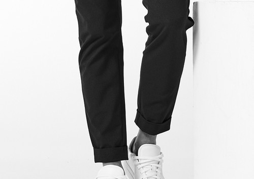 トレッチ性にも富んでいるので快適な着用感を保証します。釦は AKM 定番の本水牛六穴釦です。今期はパンツの裾をダブル仕上げにてご提案します。