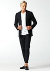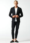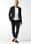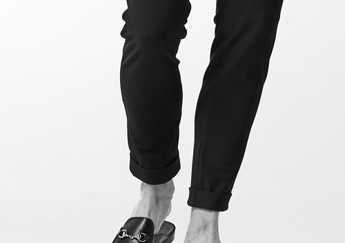 トレッチ性にも富んでいるので快適な着用感を保証します。釦は AKM 定番の本水牛六穴釦です。今期はパンツの裾をダブル仕上げにてご提案します。