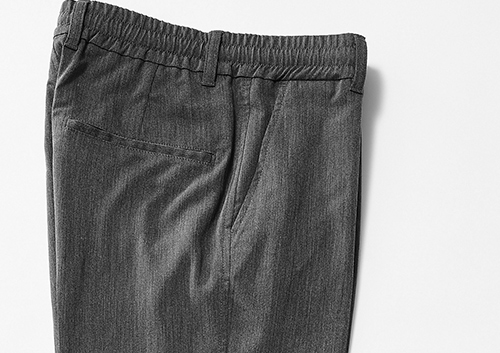 タックを無くし、股上を浅くし、センタークリースを追加することで、シャープな美しいシルエットを完成させました。