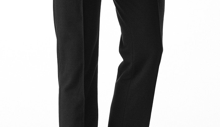 タイトストレート型はタックを無くし、股上を浅くし、センタークリースを追加することで、シャープな美しいシルエットを完成させました。
