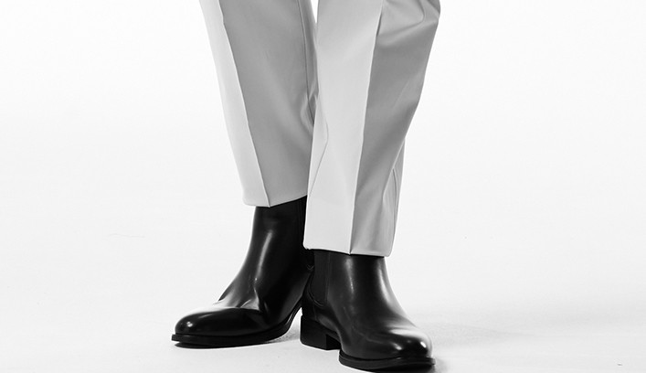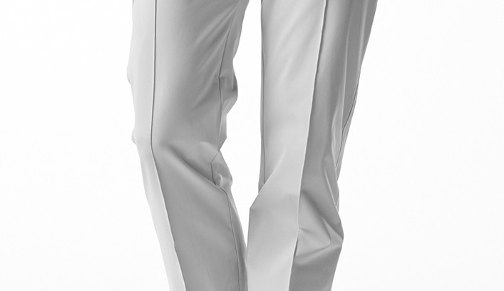 タイトストレート型はタックを無くし、股上を浅くし、センタークリースを追加することで、シャープな美しいシルエットを完成させました。