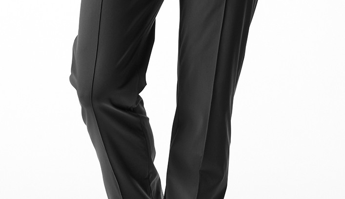 タイトストレート型はタックを無くし、股上を浅くし、センタークリースを追加することで、シャープな美しいシルエットを完成させました。