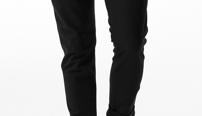 タイトストレート型はタックを無くし、股上を浅くし、センタークリースを追加することで、シャープな美しいシルエットを完成させました。