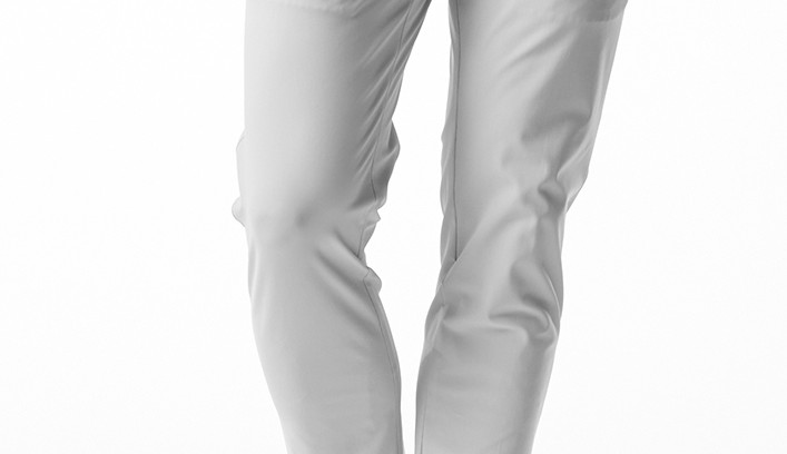 タイトストレート型はタックを無くし、股上を浅くし、センタークリースを追加することで、シャープな美しいシルエットを完成させました。
