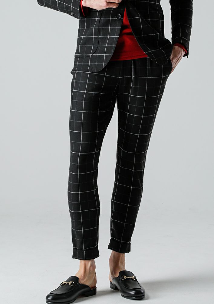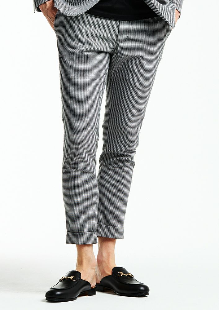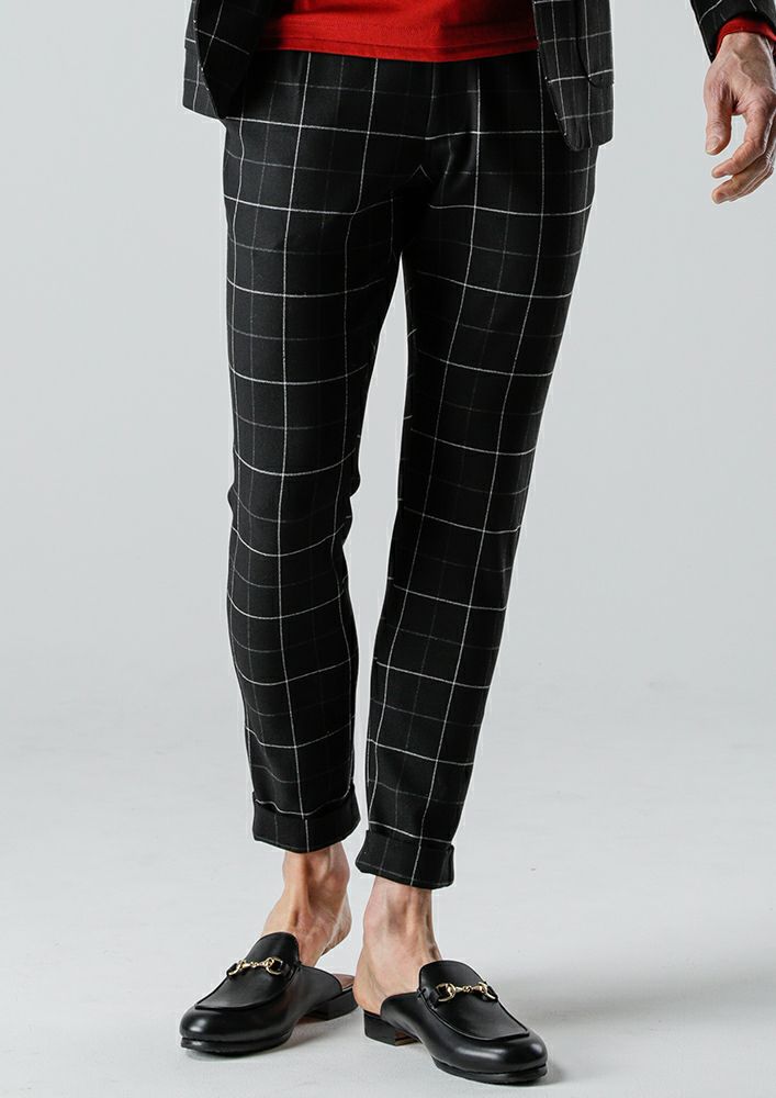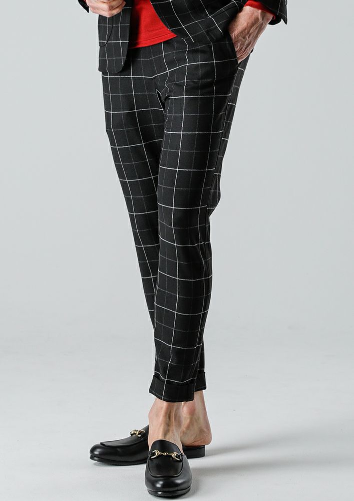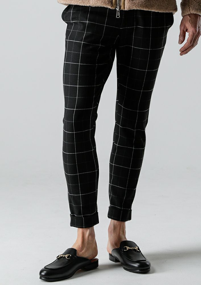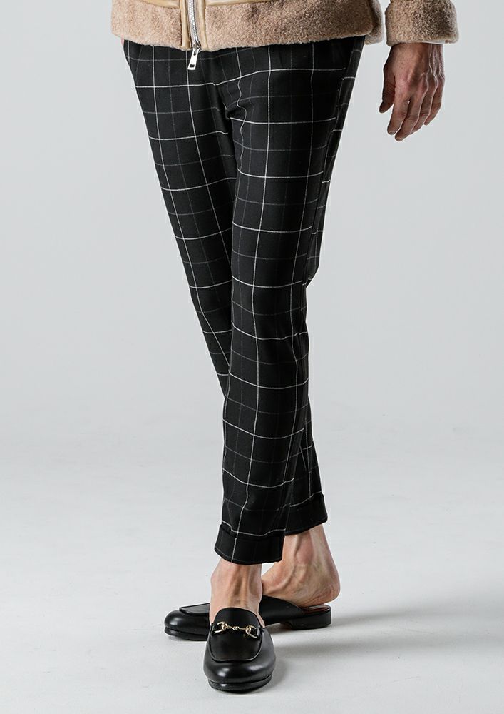 【AKM】WINDOW PEN MONALUCE SWING EASY PANTS -BLACK/WHITE-