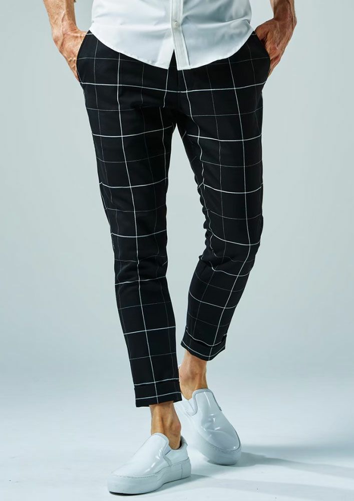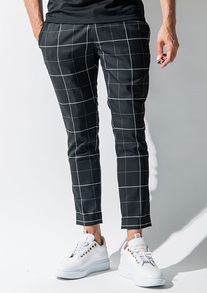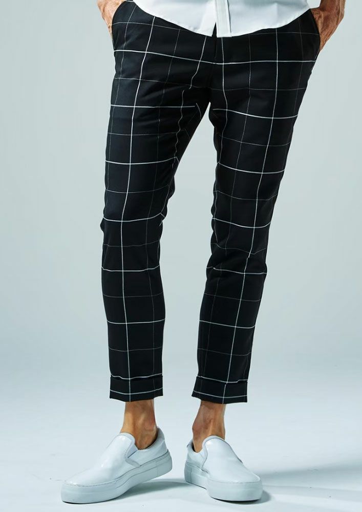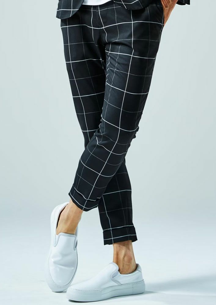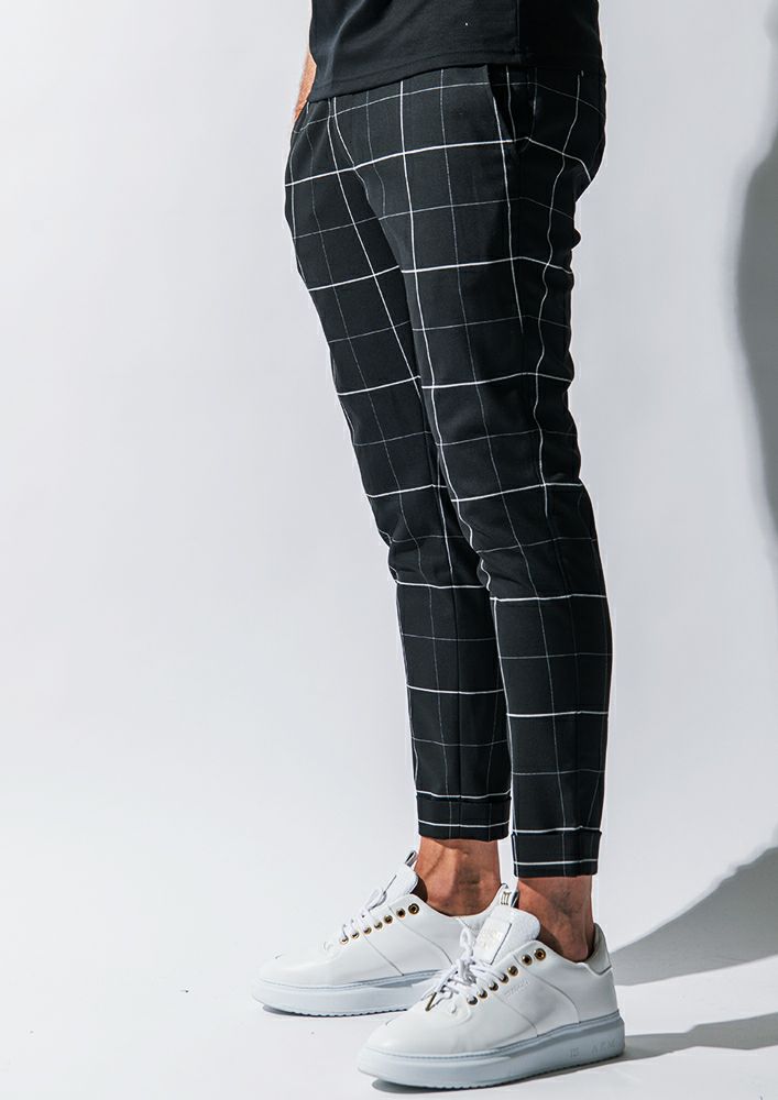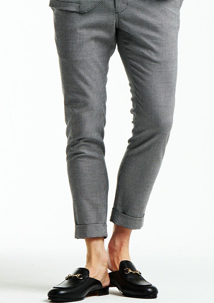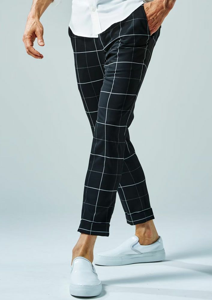 【AKM】WINDOW PEN MONALUCE SWING EASY PANTS -BLACK/WHITE-