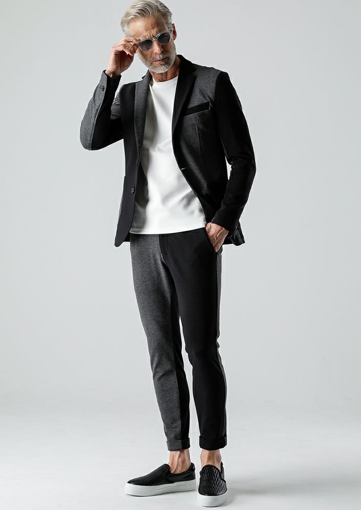 【AKM】T/R STRETCH SWING EASY PANTS -BLACK/D.GRAY-