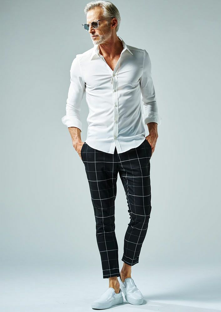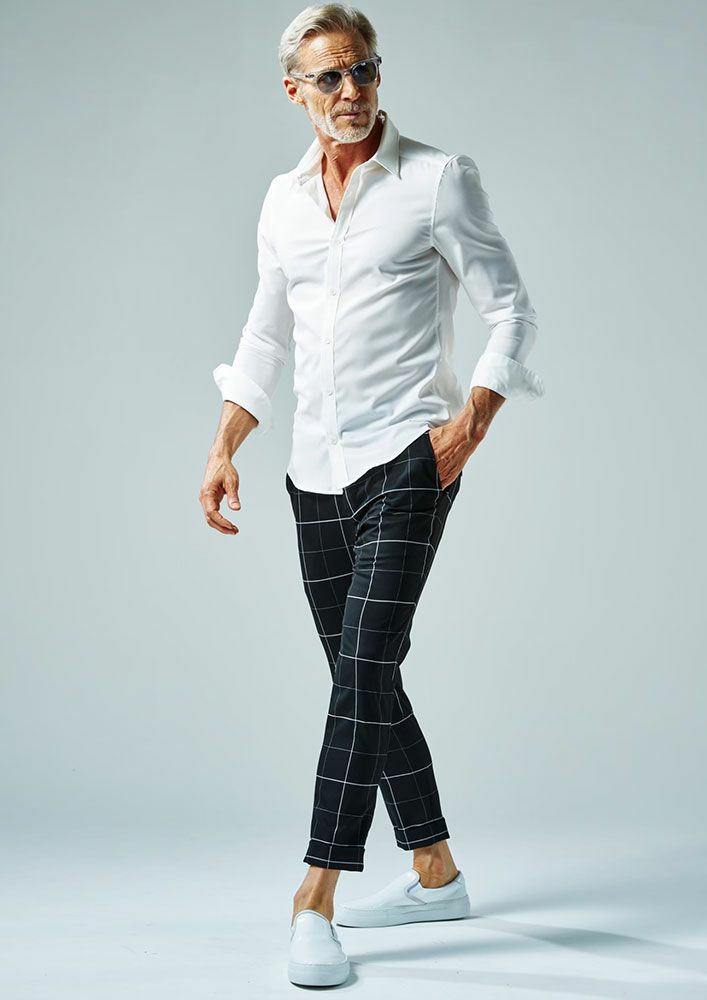 【AKM】T/R STRETCH SWING EASY PANTS -BLACK/WHITE-