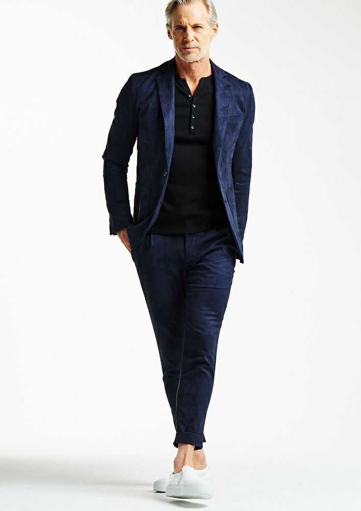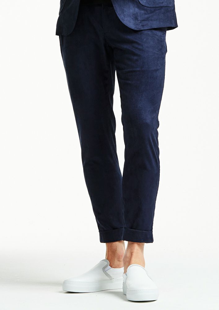 【AKM】STRETCH ECO SUEDE SWING EASY PANTS -NAVY-