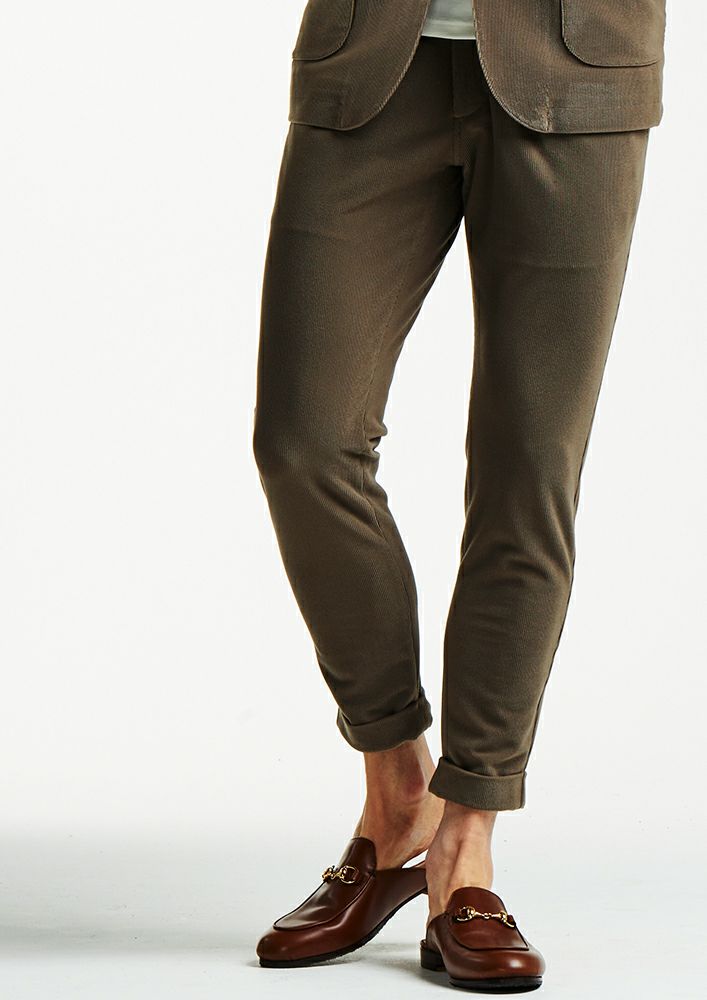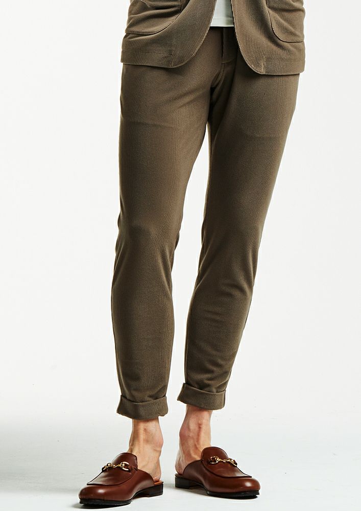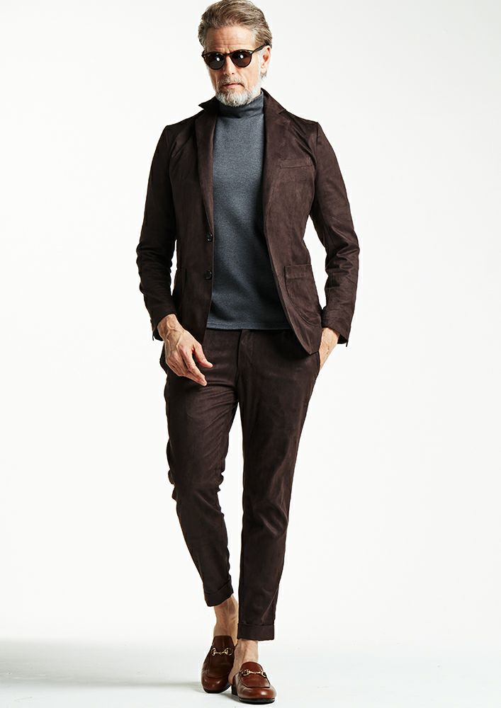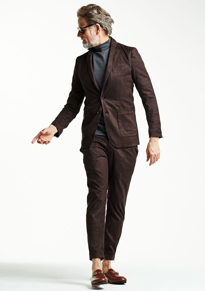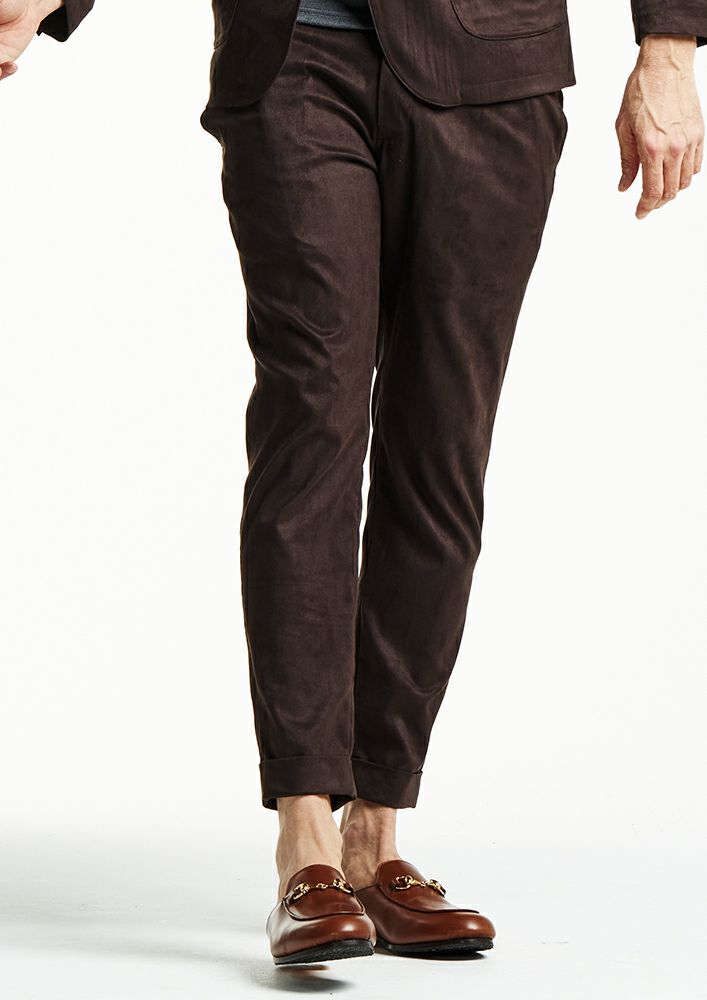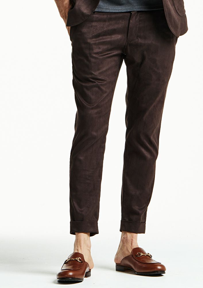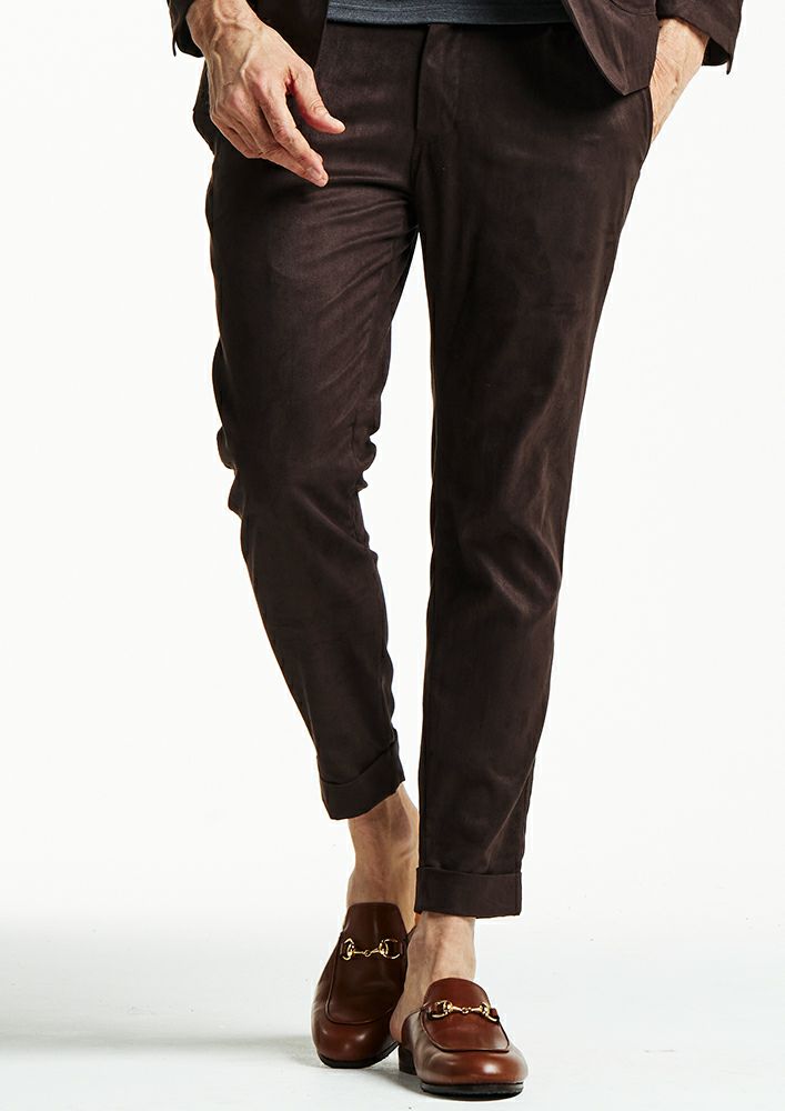 【AKM】STRETCH ECO SUEDE SWING EASY PANTS -D.BROWN-