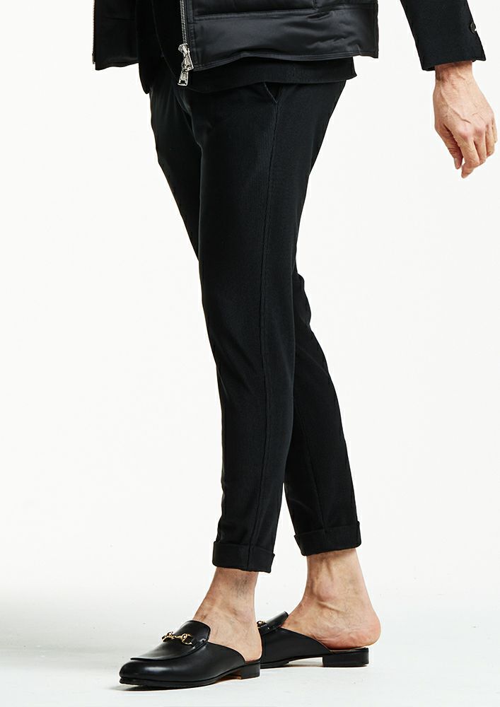 【AKM】STRETCH ECO SUEDE SWING EASY PANTS -BLACK-