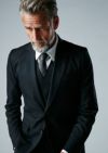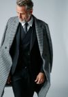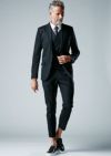 ジャケット・スラックススタイルに更なるフォーマル感を高めるジレ。中衣として過度なデザインは避けています。今季は前身をダブル仕立てにし、肩巾、身巾、袖巾など着用しやすく、且つ美しいシルエットを生むようにパターンを再構築しています。本水牛六穴釦、フラップポケットを採用し、後身は滑りを改善する為にキュプラ素材を採用しています。