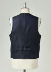 ジャケット・スラックススタイルに更なるフォーマル感を高めるジレ。中衣として過度なデザインは避けています。今季は前身をダブル仕立てにし、肩巾、身巾、袖巾など着用しやすく、且つ美しいシルエットを生むようにパターンを再構築しています。本水牛六穴釦、フラップポケットを採用し、後身は滑りを改善する為にキュプラ素材を採用しています。