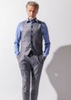 ジャケット・スラックススタイルに更なるフォーマル感を高めるジレ。中衣として過度なデザインは避けています。今季は前身をダブル仕立てにし、肩巾、身巾、袖巾など着用しやすく、且つ美しいシルエットを生むようにパターンを再構築しています。本水牛六穴釦、フラップポケットを採用し、 後身は滑りを改善する為にキュプラ素材を採用しています。