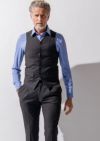 ジャケット・スラックススタイルに更なるフォーマル感を高めるジレ。中衣として過度なデザインは避けています。今季は前身をダブル仕立てにし、肩巾、身巾、袖巾など着用しやすく、且つ美しいシルエットを生むようにパターンを再構築しています。本水牛六穴釦、フラップポケットを採用し、 後身は滑りを改善する為にキュプラ素材を採用しています。