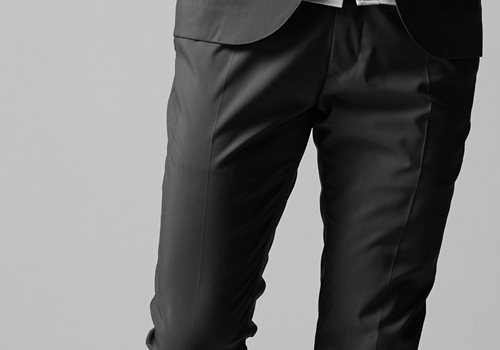 テイパードシルエットにパターンメイキングしています。デザイン製を極力削ぎ落としシンプルに仕上げること