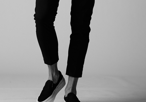 単体でも穿けるようにしています。今季は裾の処理をシングル仕上げにしています。