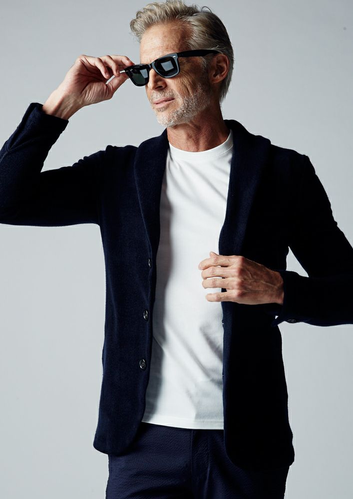 【AKM】SILKY TENCEL PILE SHAWL 2B JACKET -DARKNAVY-
