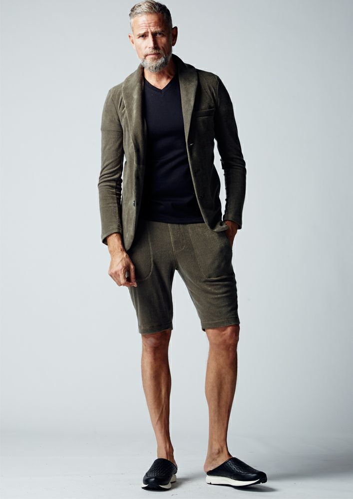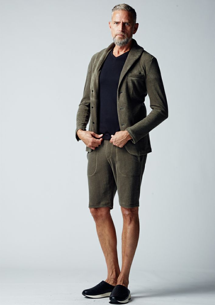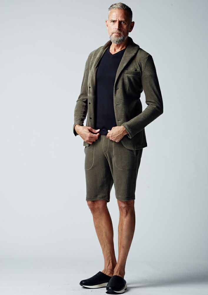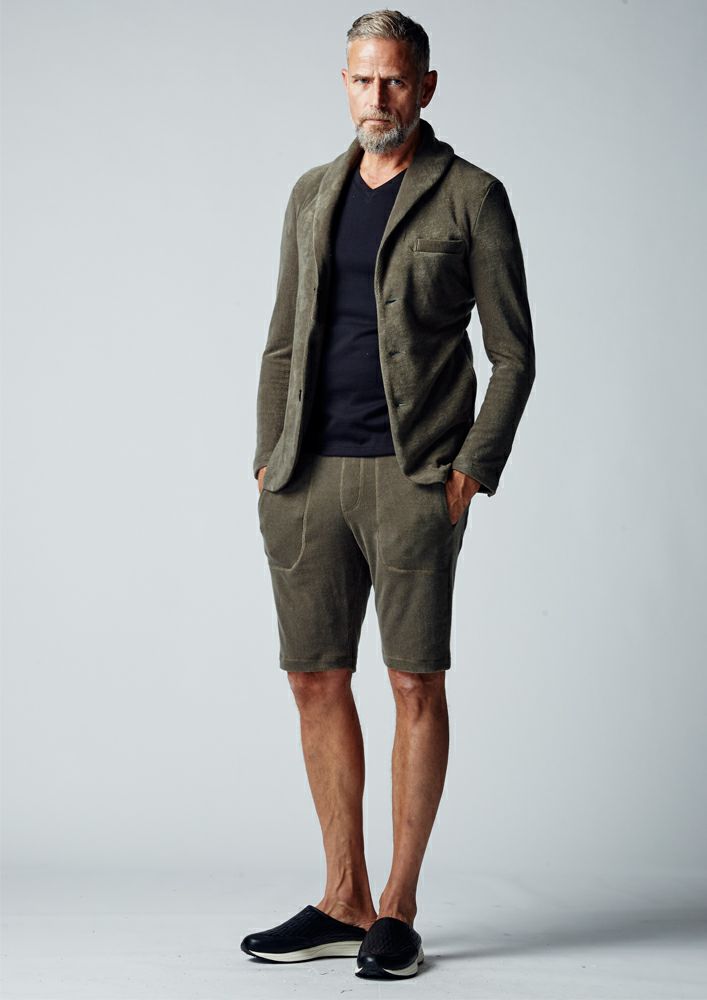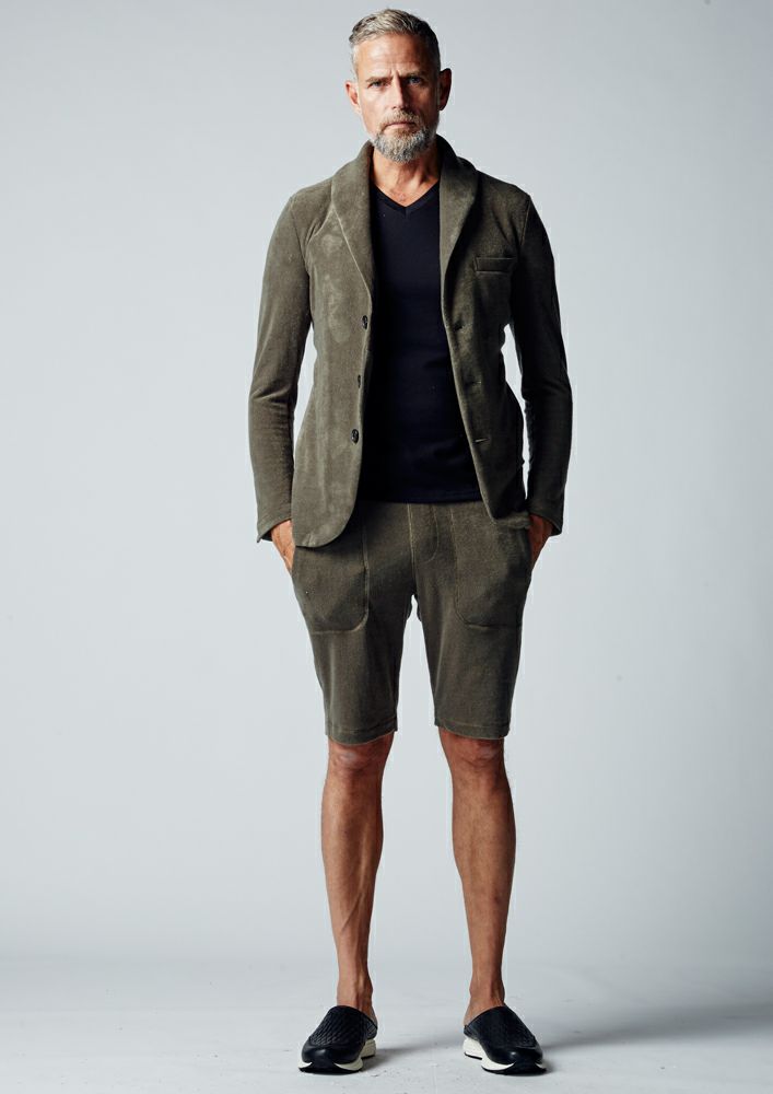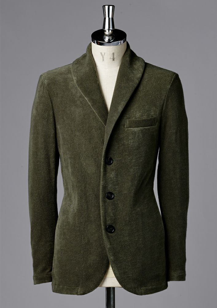 【AKM】SILKY TENCEL PILE SHAWL 2B JACKET -KHAKI-