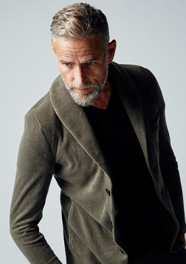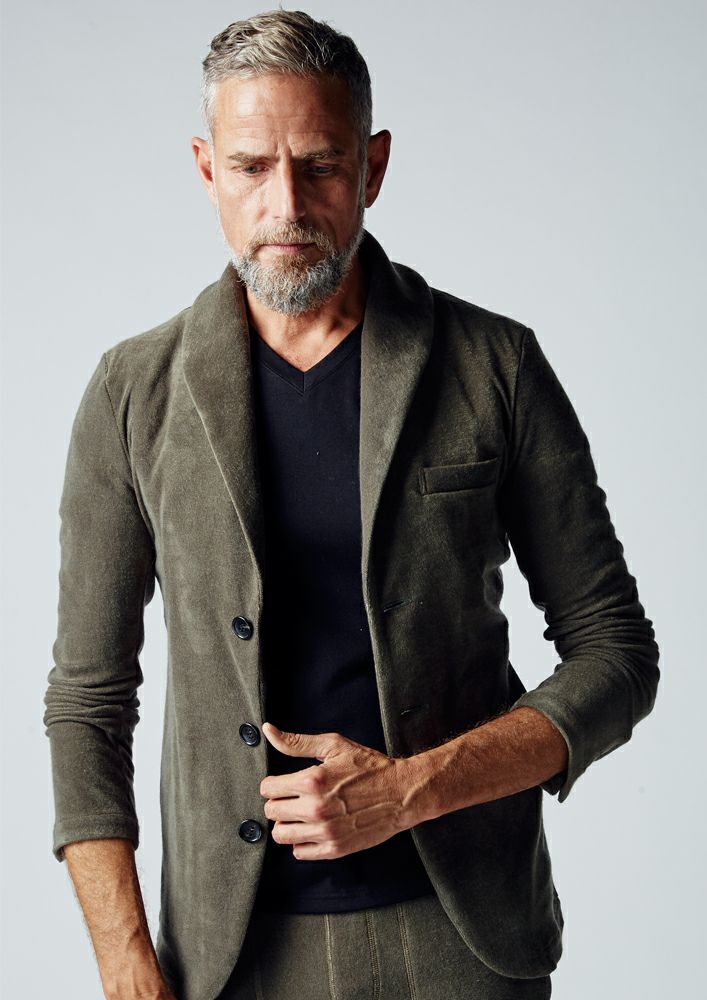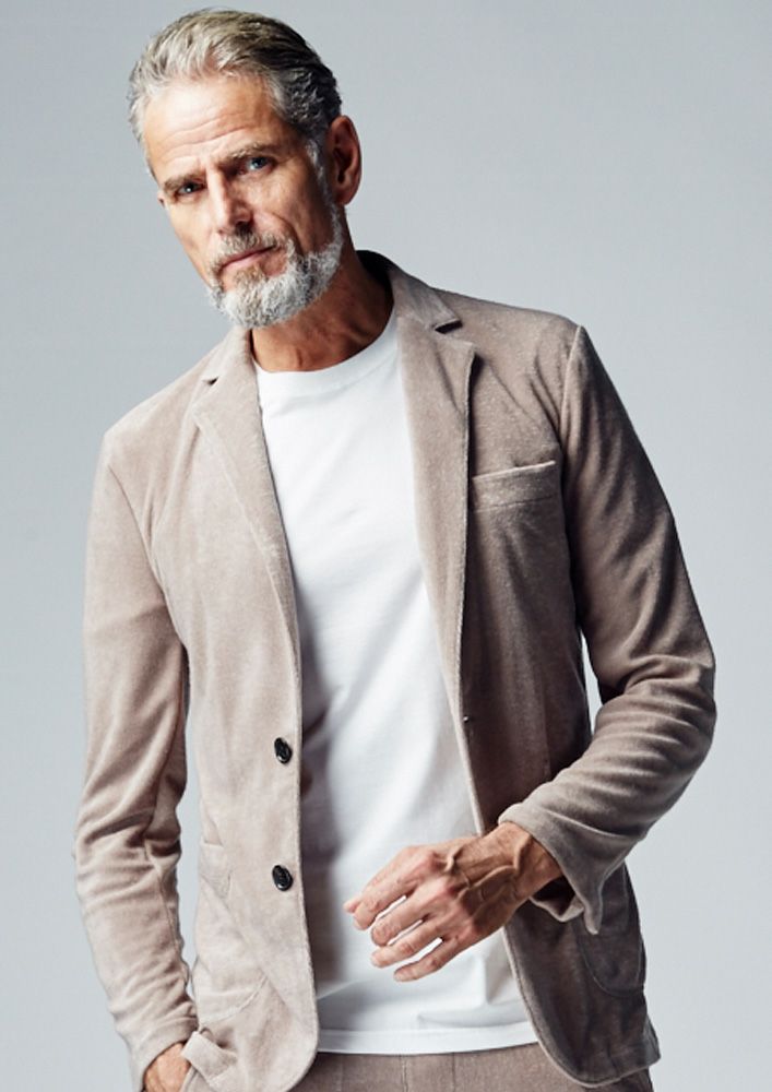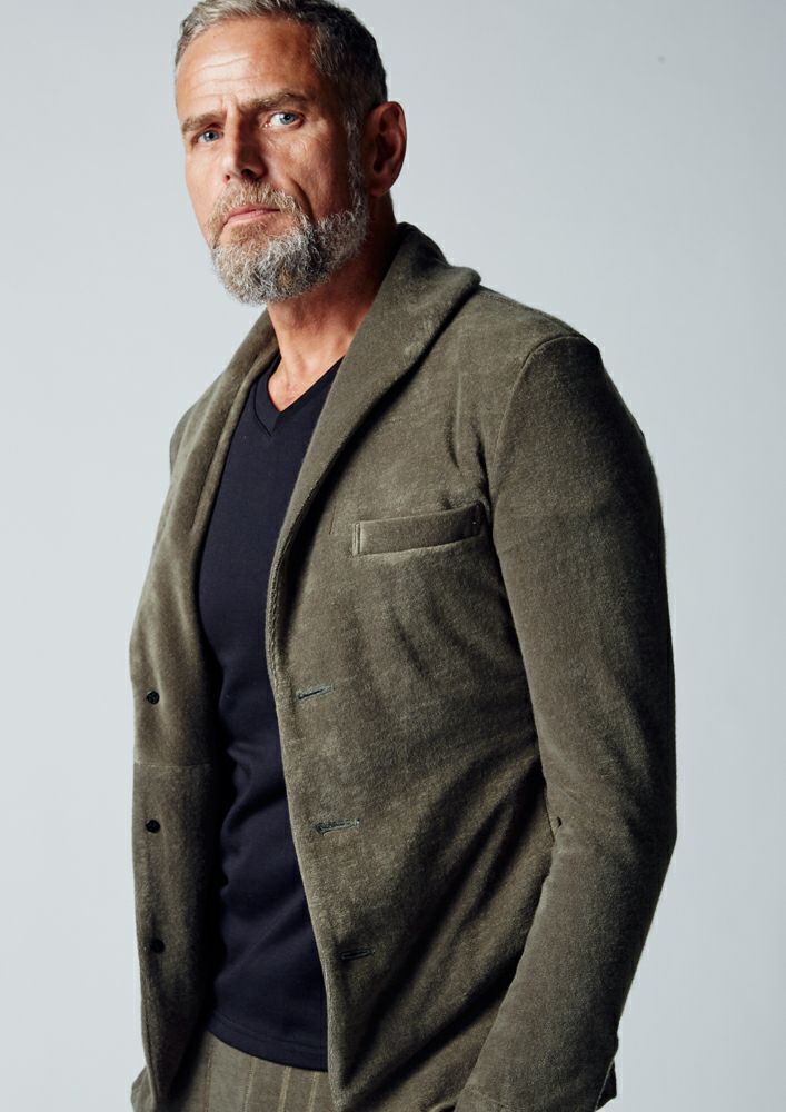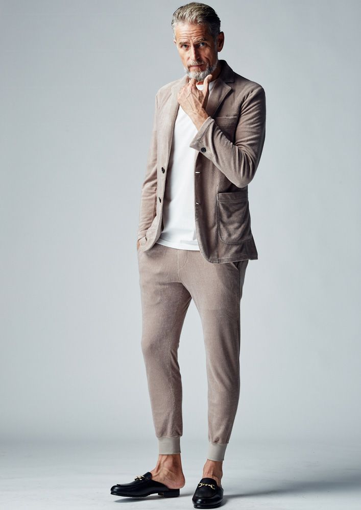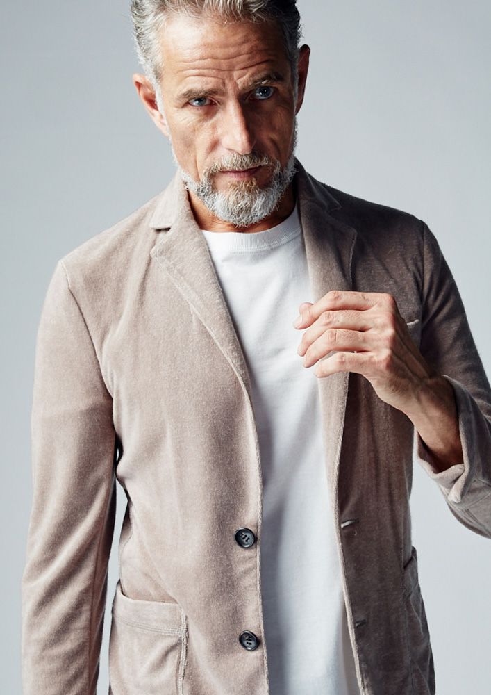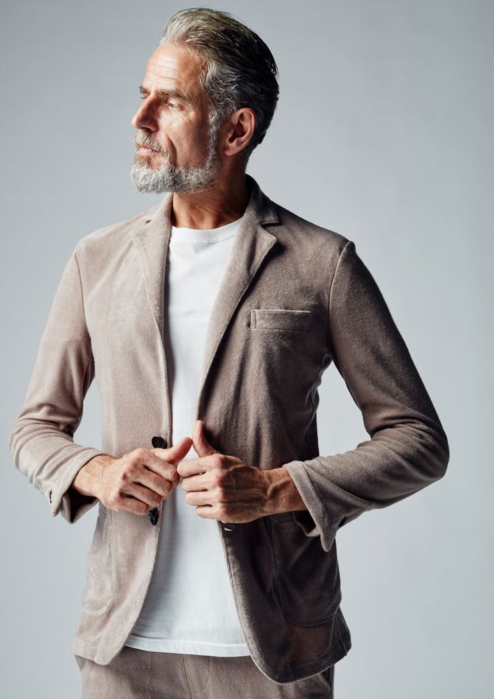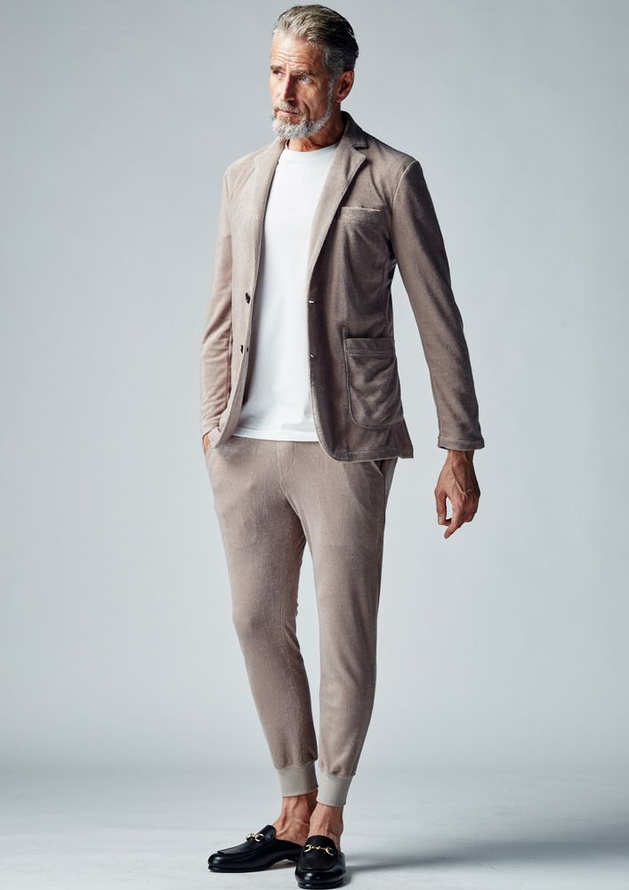 【AKM】SILKY TENCEL PILE 2B-JACKET -GRAY BEIGE-