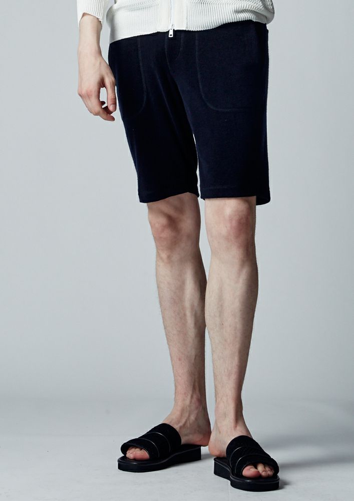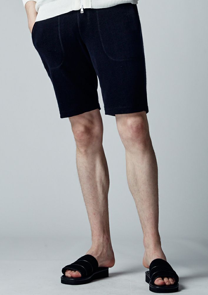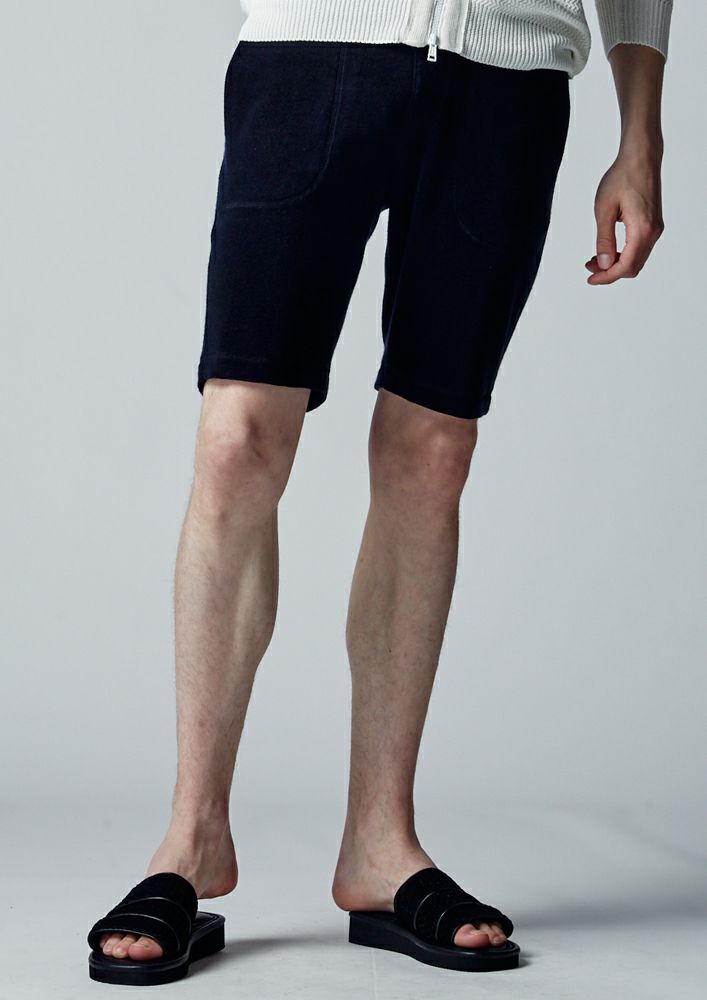 【AKM】SILKY TENCEL PILE EASY SHORTS -DARKNAVY-