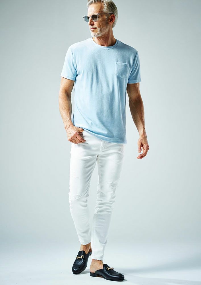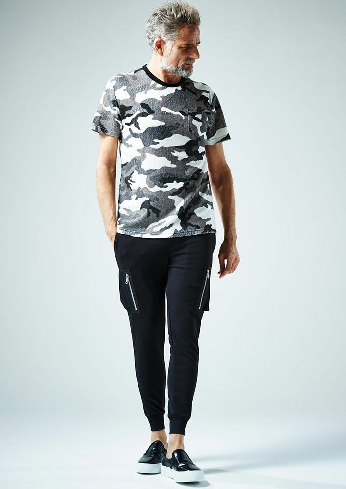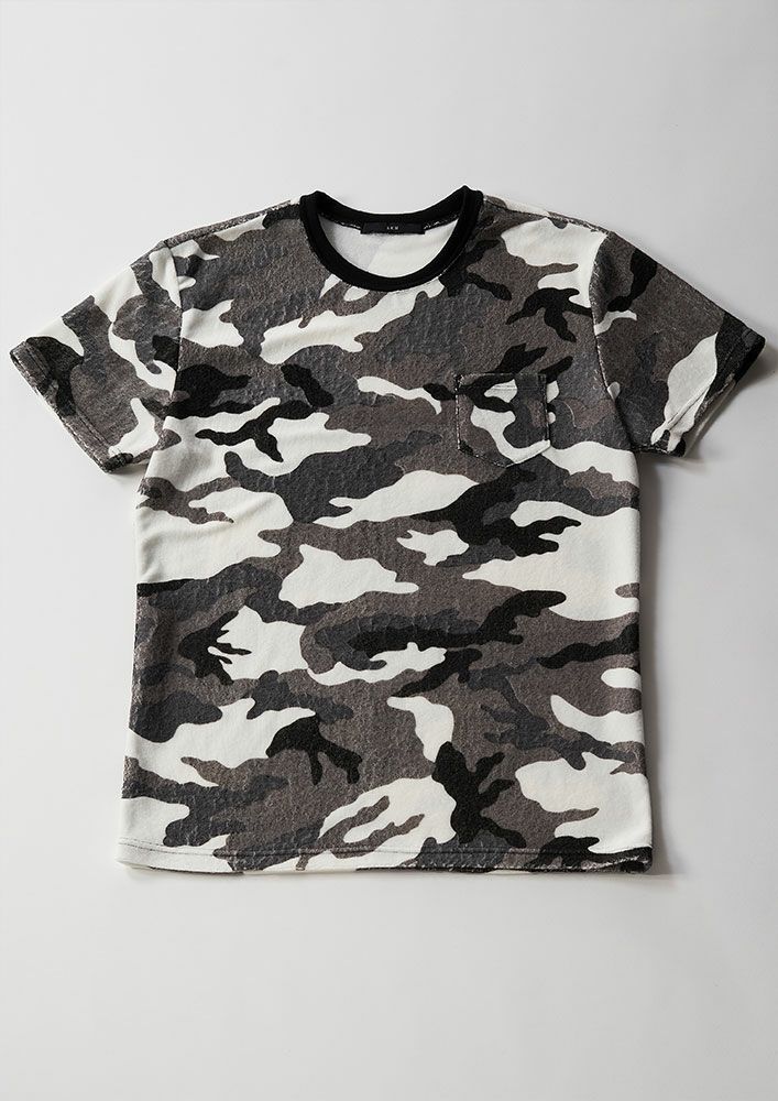 【AKM】ORIGINAL SILKY TENCEL PILE POCKET S/S T -WHITE/BLACK-