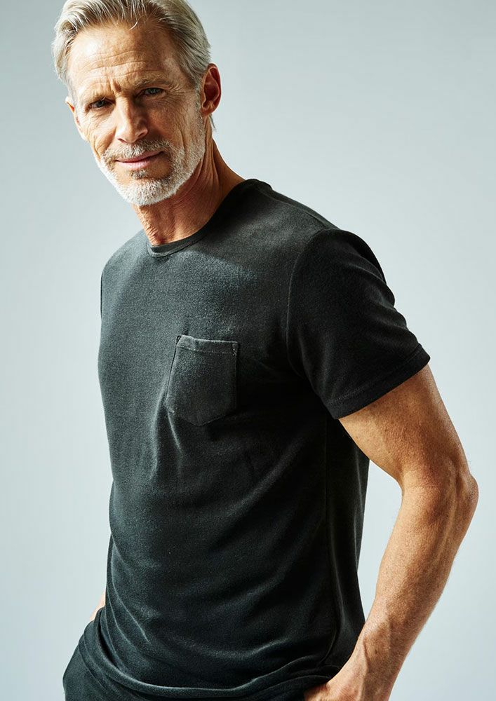 【AKM】ORIGINAL SILKY TENCEL PILE POCKET S/S T -D.GRAY-