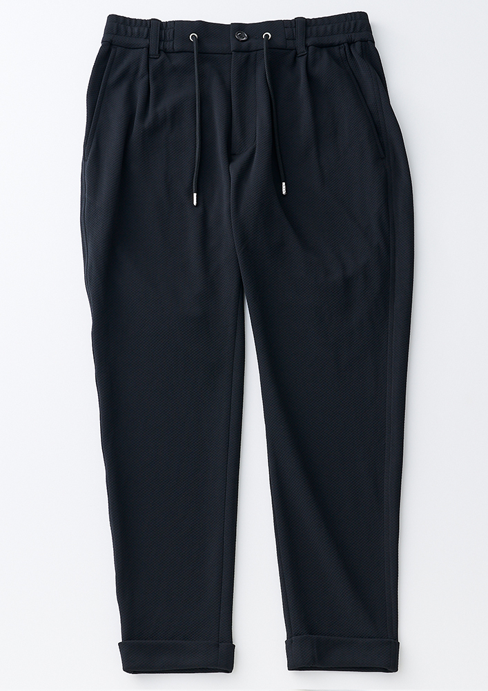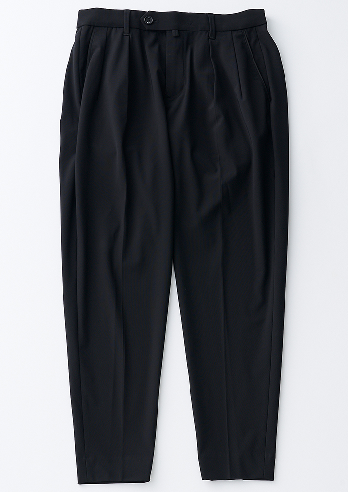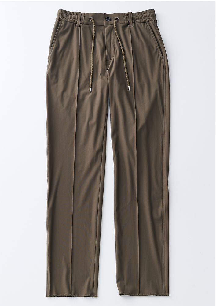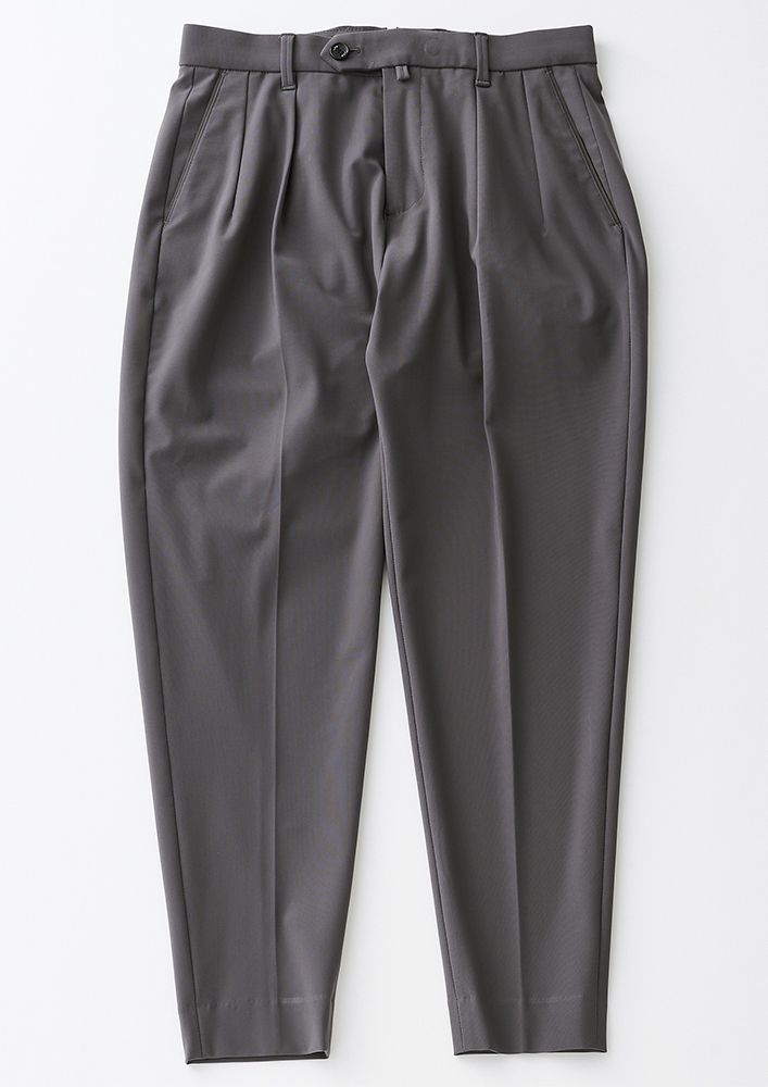 トラウザーはヒップからワタリにかけて、ゆとりを持たせ裾にかけてテーパードさせ、リラックス感とシャープさを兼ね備えたシルエットに仕上げています。