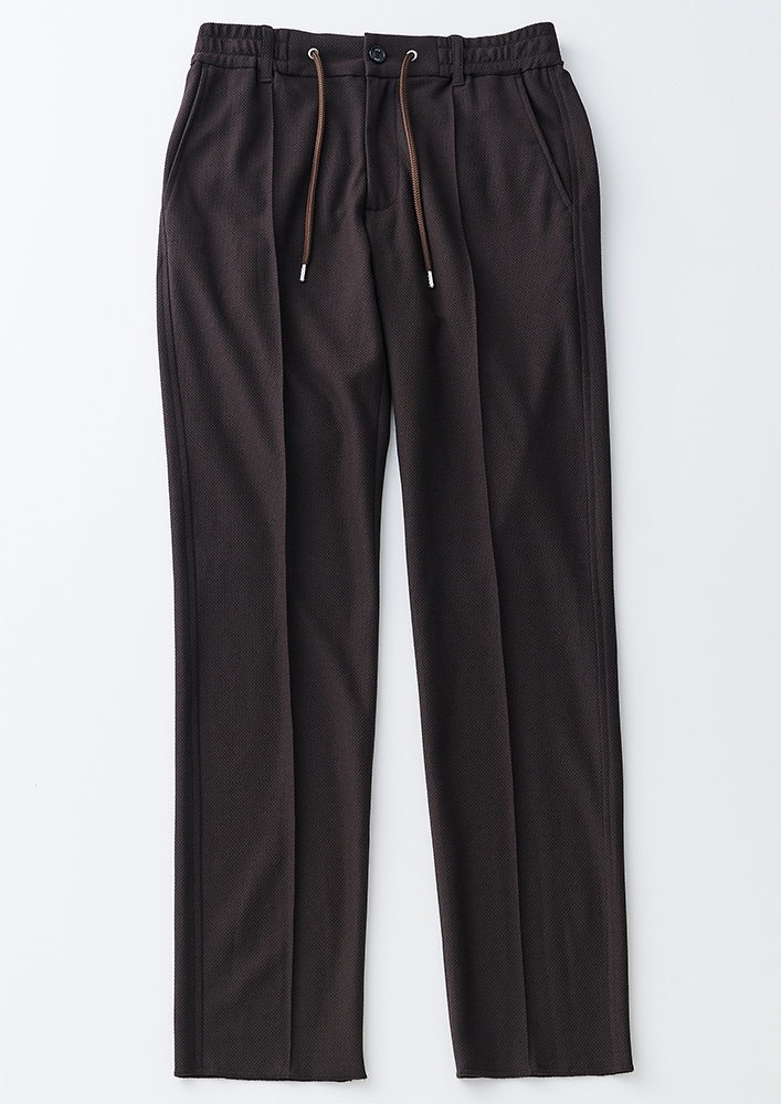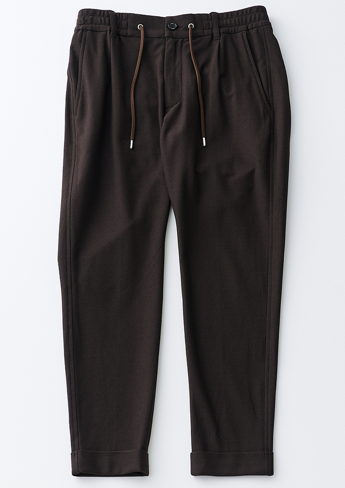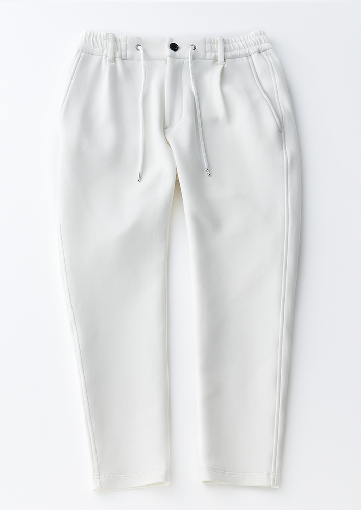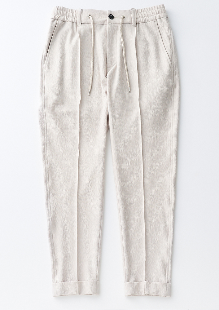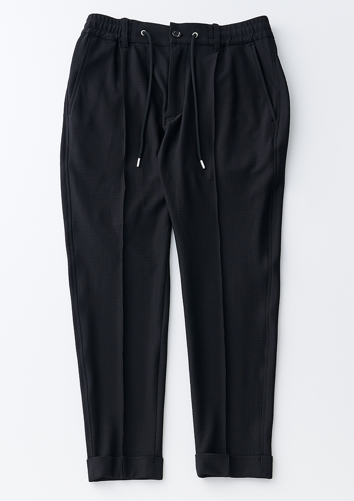 トラウザーはヒップからワタリにかけて、ゆとりを持たせ裾にかけてテーパードさせ、リラックス感とシャープさを兼ね備えたシルエットに仕上げています。