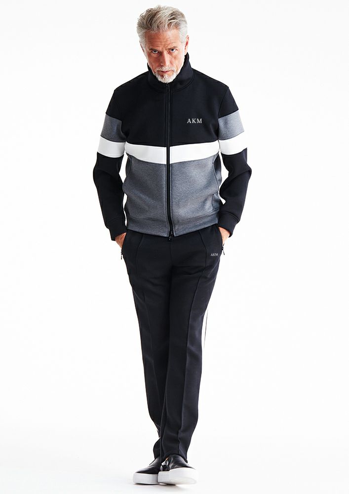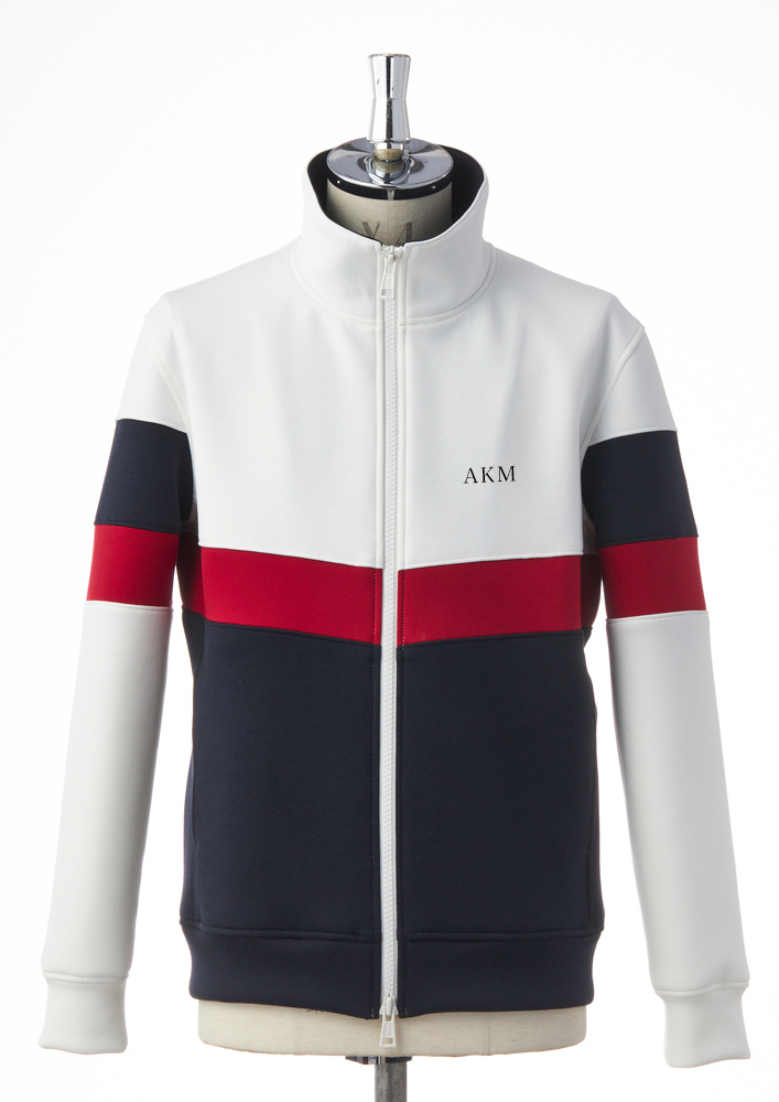 AKMお馴染みのスタンドトラック型にデザイン切替を入れて、3配色にまとめ上げた新作ブルゾンです。