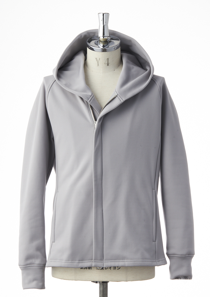 改良を重ね、10年以上作り続けているラグランスリーブのフロントZIPパーカーです。袖口、裾にリブを使用せず、表地共地にてミニマルに仕上げています。