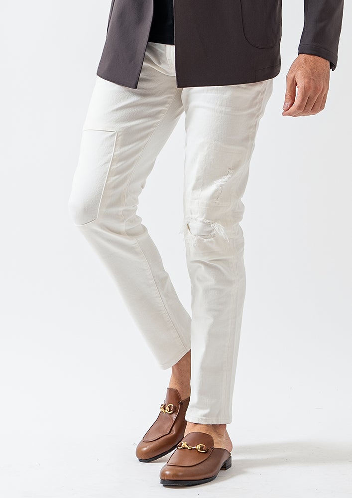 柄の個性と都会的な軽快さを両立した、AKMらしい洗練のカジュアルコーデです。
