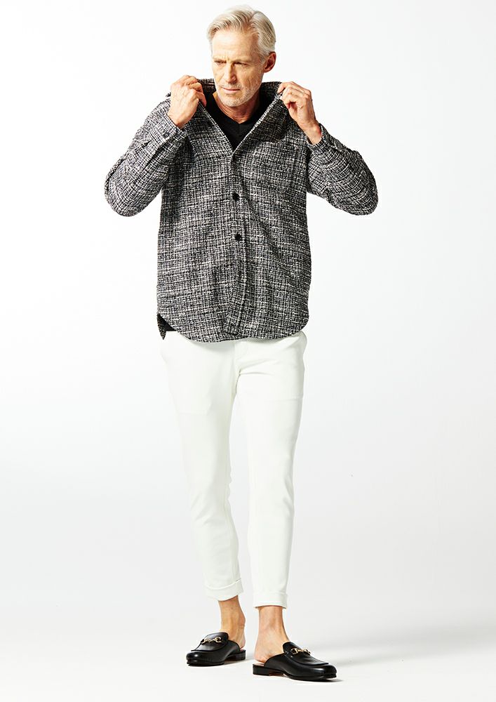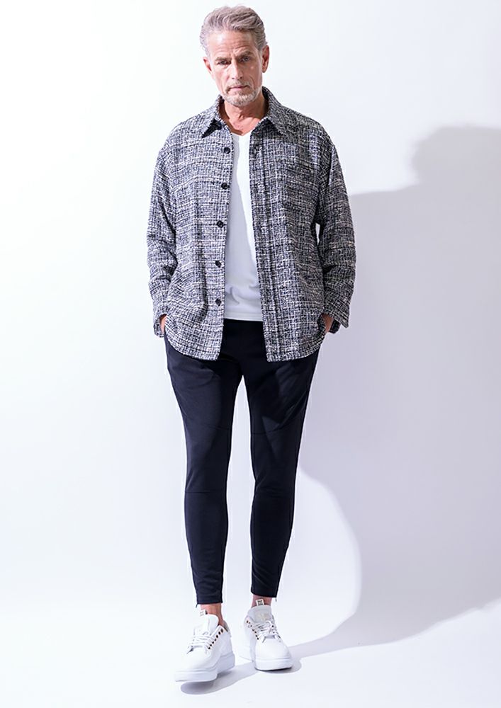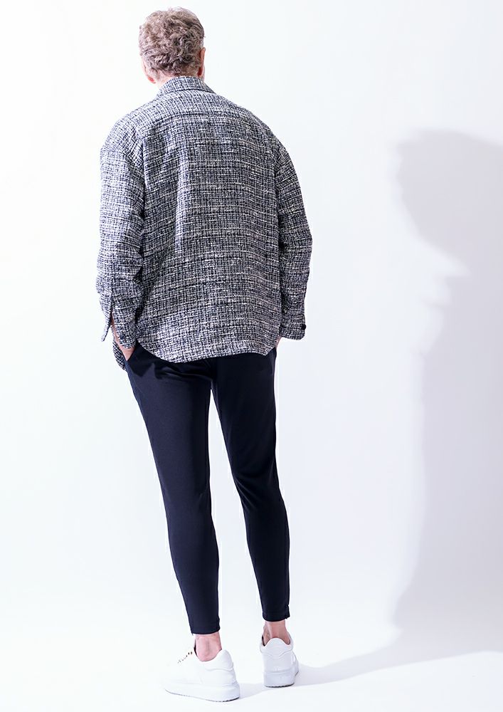【AKM】LAME MIX FANCY TWEED SHIRTS BLOUSON -BLACK-
