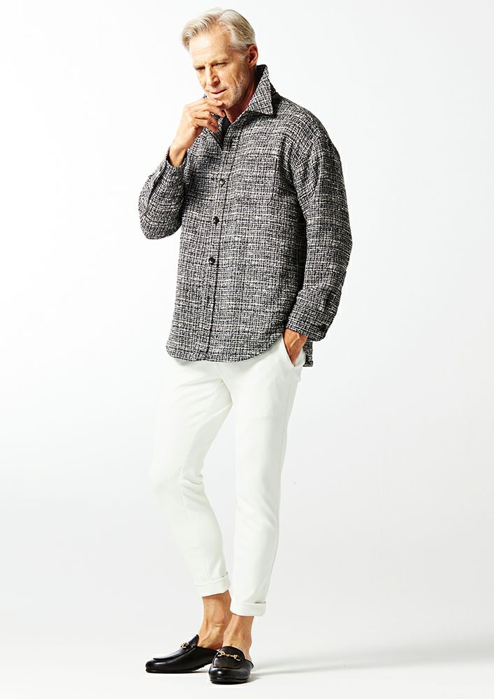 【AKM】LAME MIX FANCY TWEED SHIRTS BLOUSON -BEIGE-